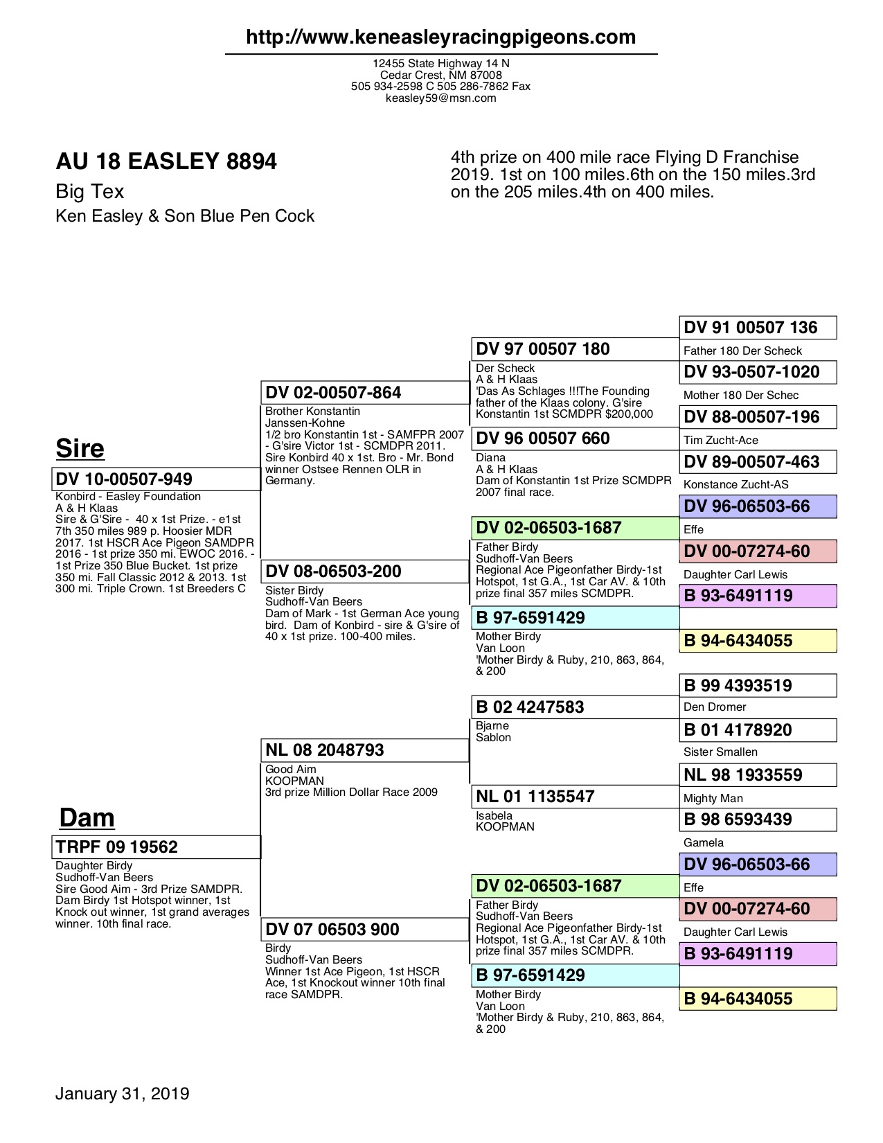 Ken Easley & Son Racing is small breeding facility that is serious about winning & maintaining a stud of consistent top breeding & champion pigeons.